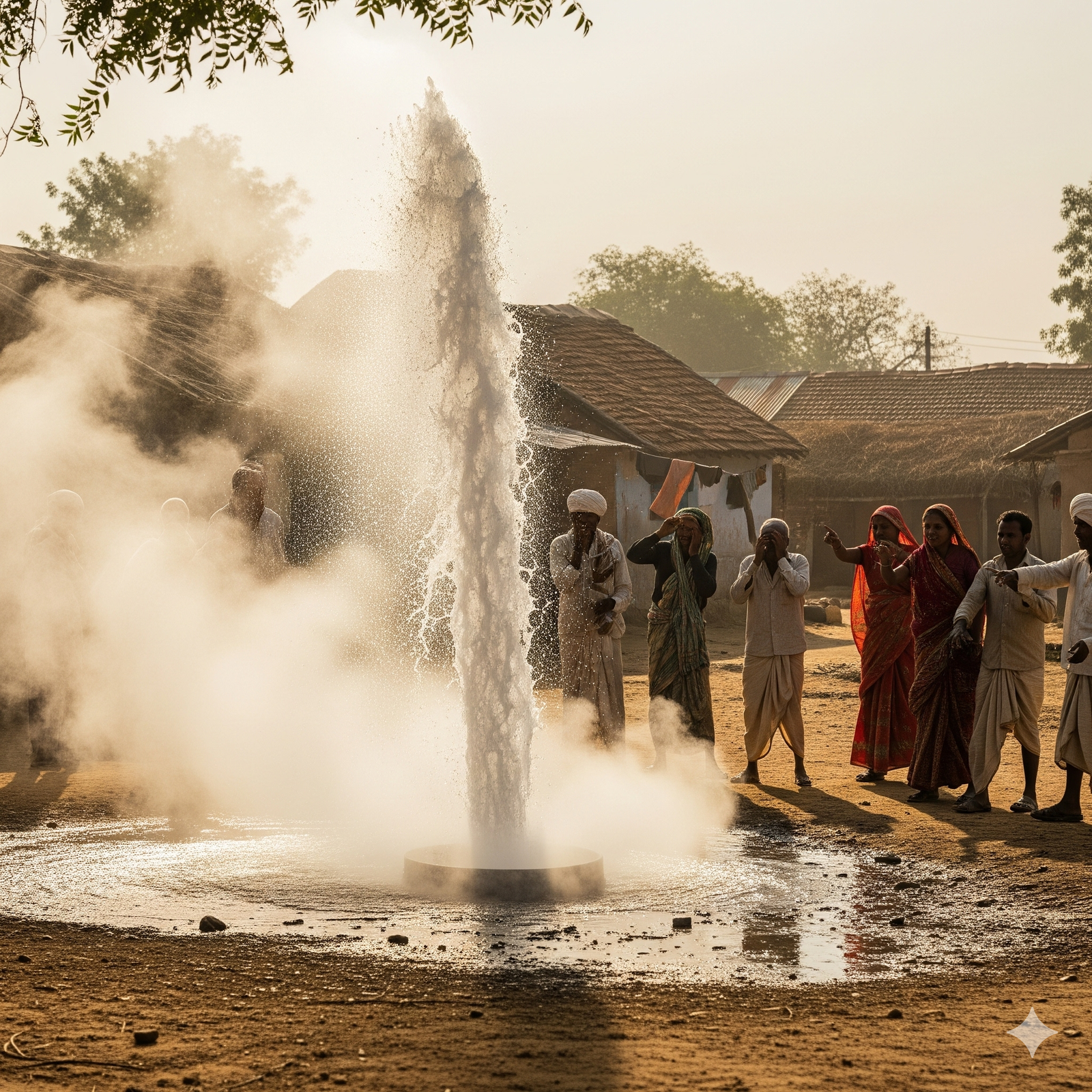 ग्राम सिरवाड़ में बोरिंग से अचानक गरम पानी निकलने से हड़कंप