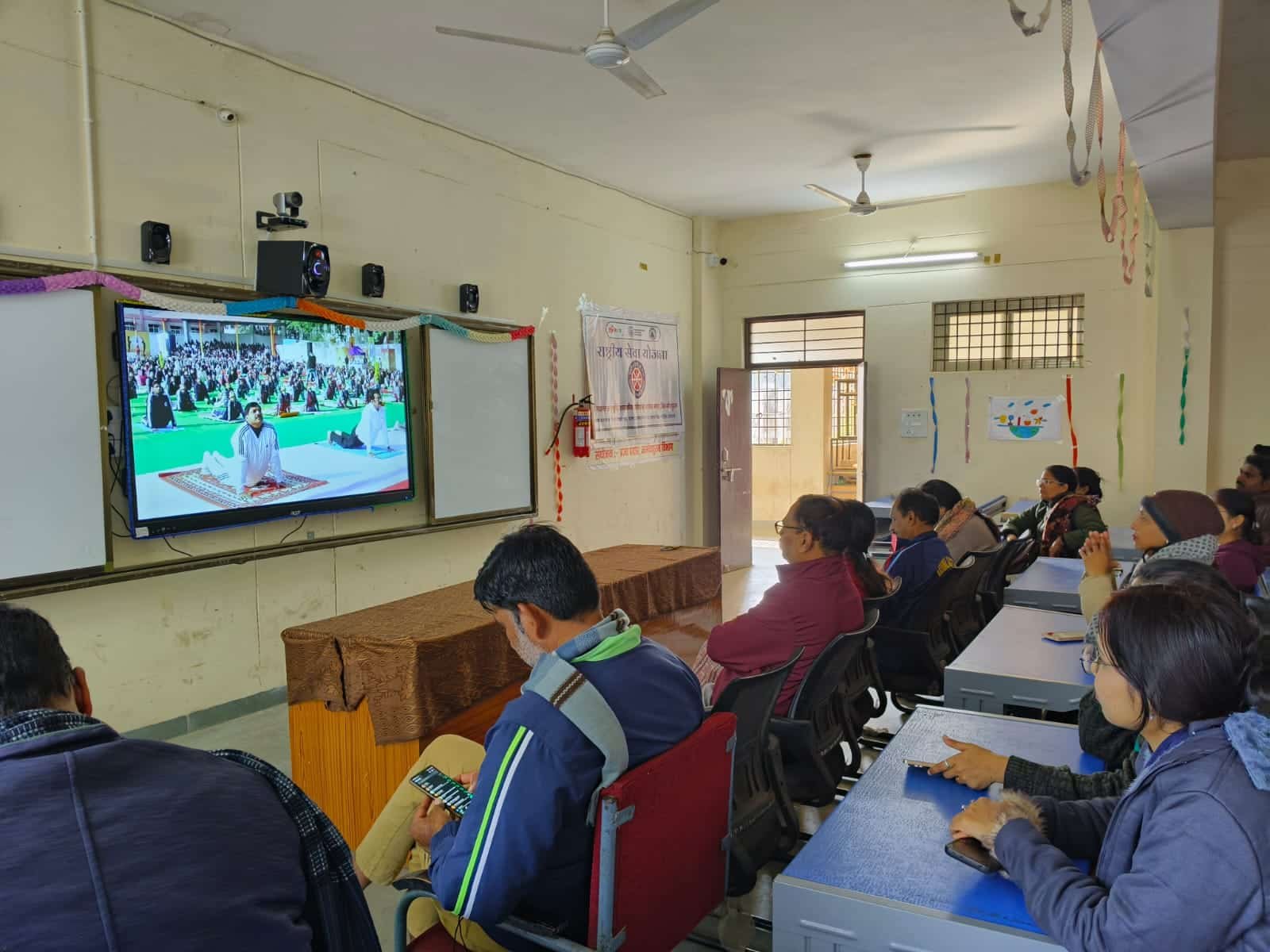 महाविद्यालय में युवा दिवस पर विद्यार्थियों सहित समस्त स्टाफ ने किया सामूहिक सूर्य नमस्कार
