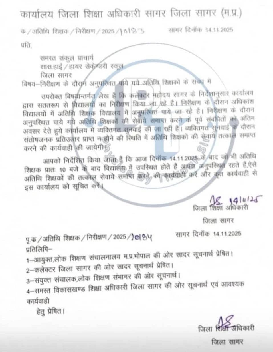 सागर में जिला शिक्षा अधिकारी का विवादित सर्कुलर: नियमों के विरुद्ध आदेश पर उठे सवाल