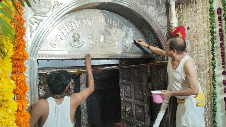 Ujjain News:श्रावण महोत्सव बाबा महाकाल द्वारा रूद्र यंत्र एवं गर्भगृह की चांदी की दीवार की सफाई