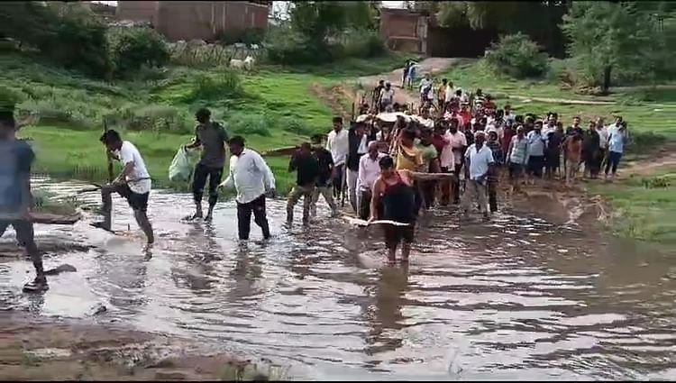 Damoh News: दमोह के ग्रामीणों ने श्मशान घाट के रास्ते में घुटनों तक पानी भरे नाले से अंतिम संस्कार जुलूस निकालने के लिए मजबूर किया
