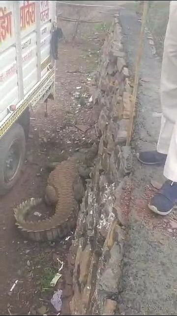 Damoh News: दमोह में 6 फीट लंबा मगरमच्छ बांध से निकलकर रिहायशी इलाके में पहुंचा