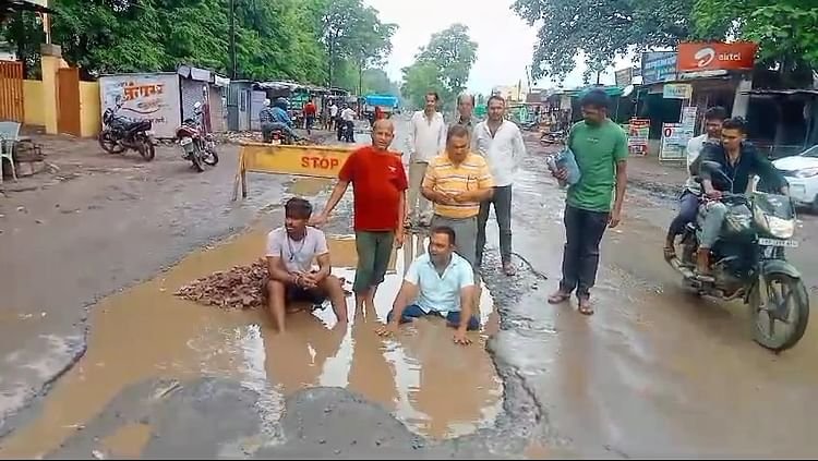 Damoh News: पर्यटन राज्य मंत्री के क्षेत्र की सड़क पर दो फीट गहरे गड्ढे, लोगों ने किया विरोध