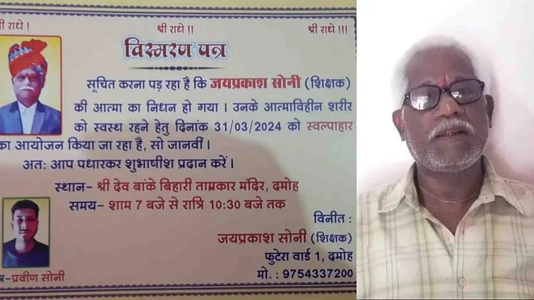 Damoh News: सेवानिवृत्त शिक्षक ने अपने जीवित रहते ही छपवा लिए 13वीं के कार्ड